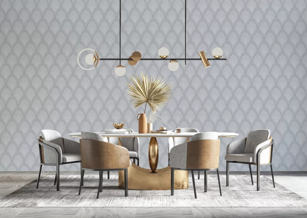 Metálos kollekció Speciel FX2: Gyöngyszürke art deco legyezőmintás (mosható) vlies-vinyl tapéta