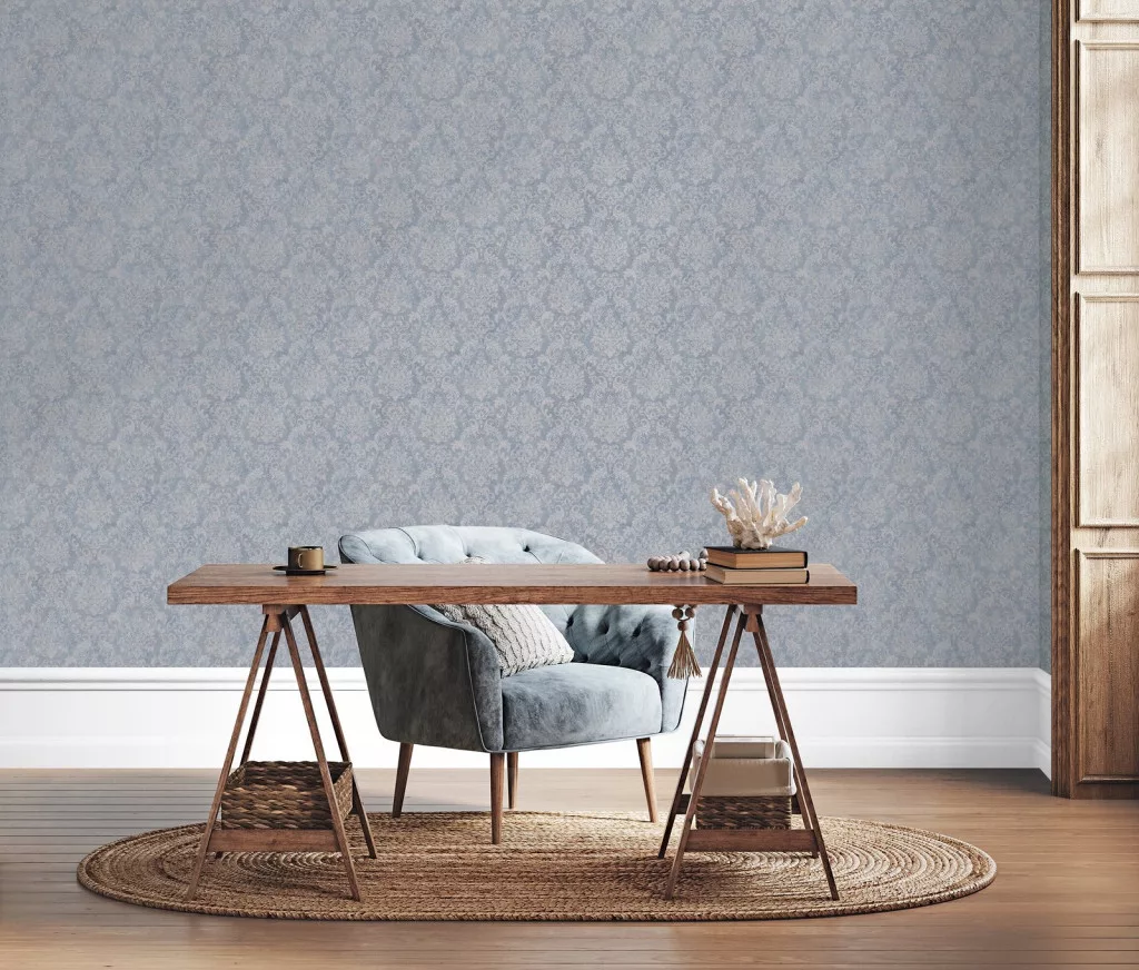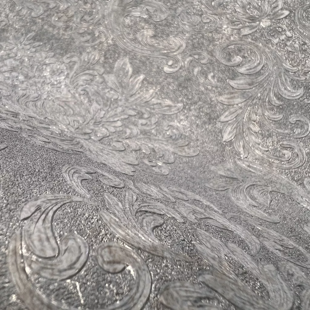 Metálos kollekció Speciel FX2: Kékesszürke-ezüstös barokk damaszt mintás (mosható) vlies-vinyl tapéta