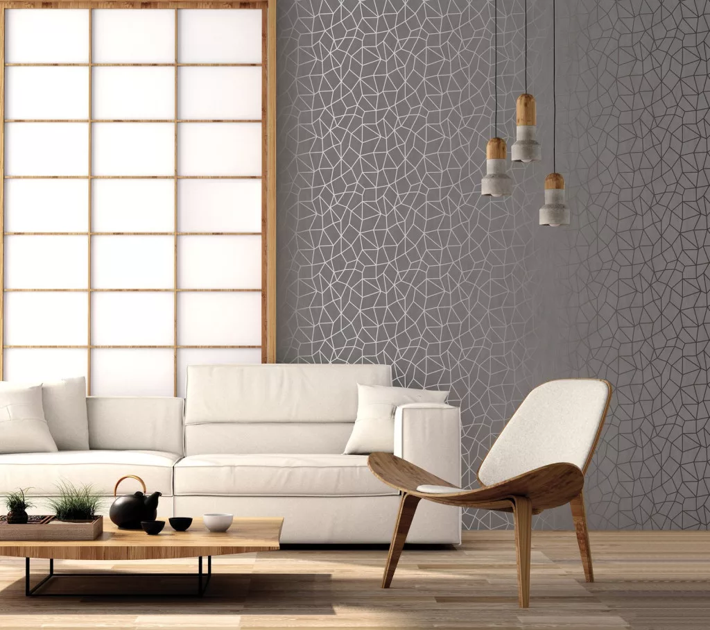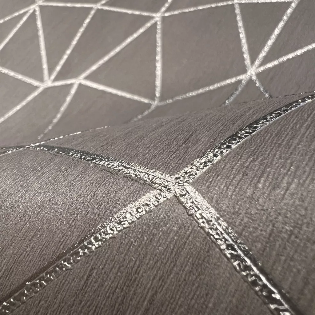 Metálos kollekció Speciel FX2: Melegszürke geometrikus háló mintás (mosható) vlies-vinyl tapéta