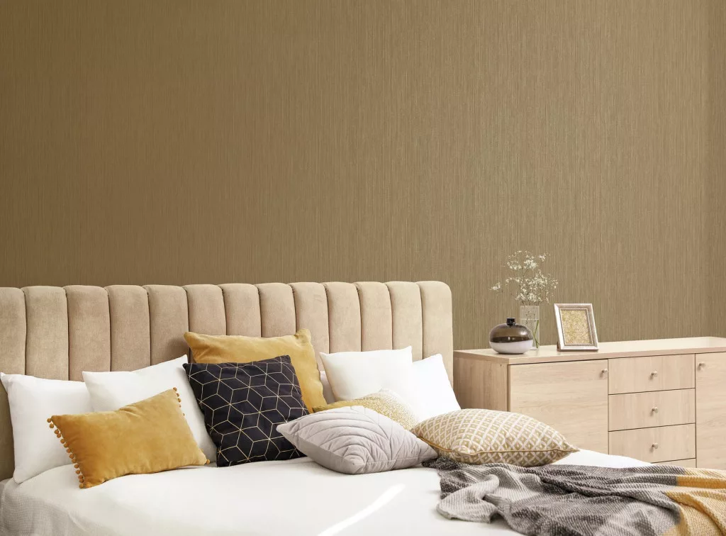 Metálos kollekció Speciel FX2: Mustársárga alapon aranyozott strukturált (mosható) vlies-vinyl tapéta
