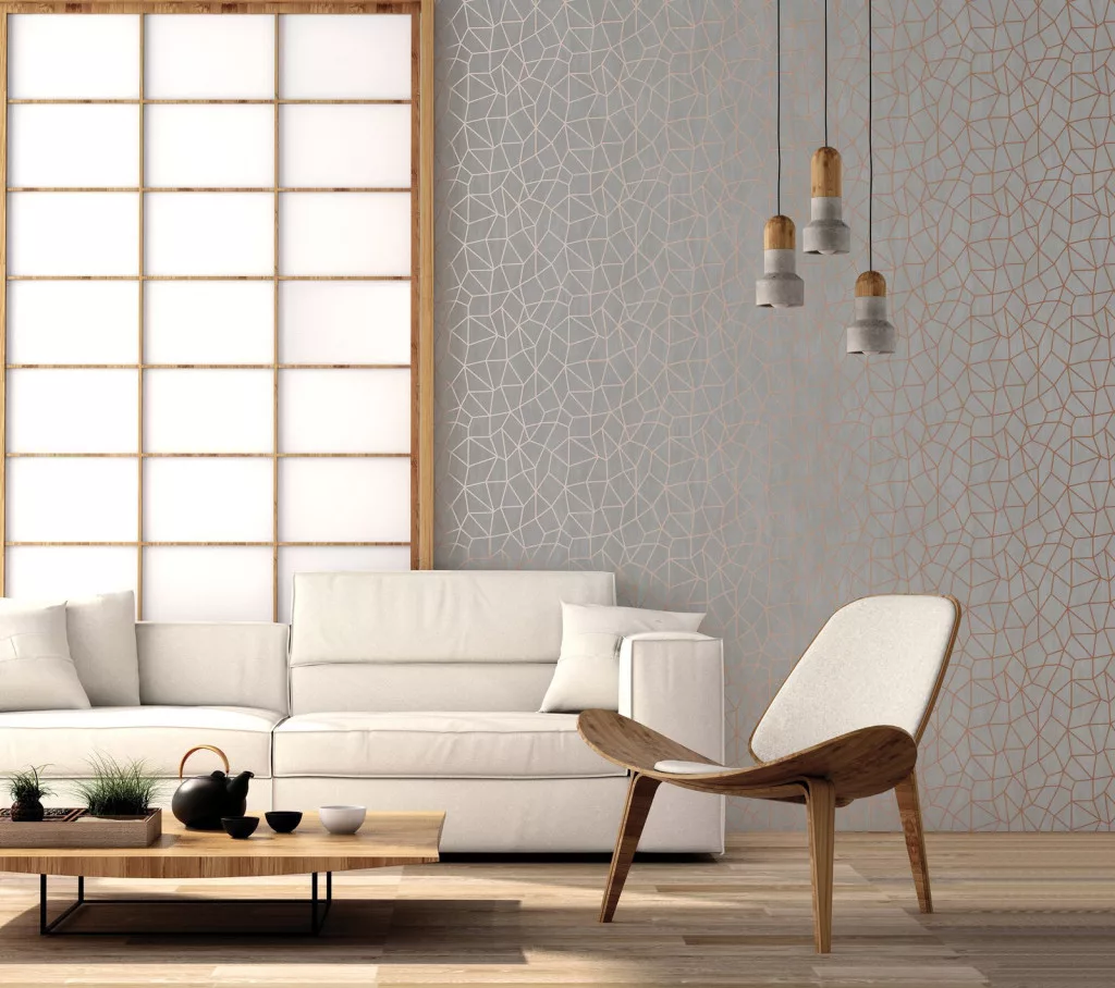 Metálos kollekció Speciel FX2: Pezsgőarany geometrikus háló mintás (mosható) vlies-vinyl tapéta