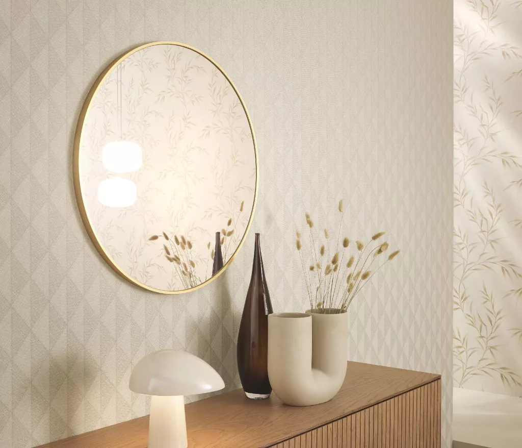 Natúr színű matt geometrikus mintás (lángálló, mosható) vlies-vinyl tapéta