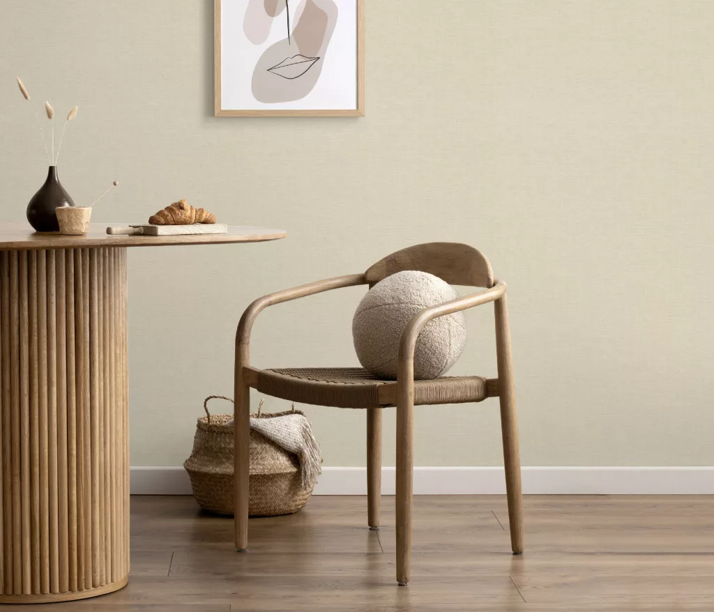 Natúros bézs matt egyszínű szövött textil hatású (lángálló, mosható) vlies-vinyl tapéta