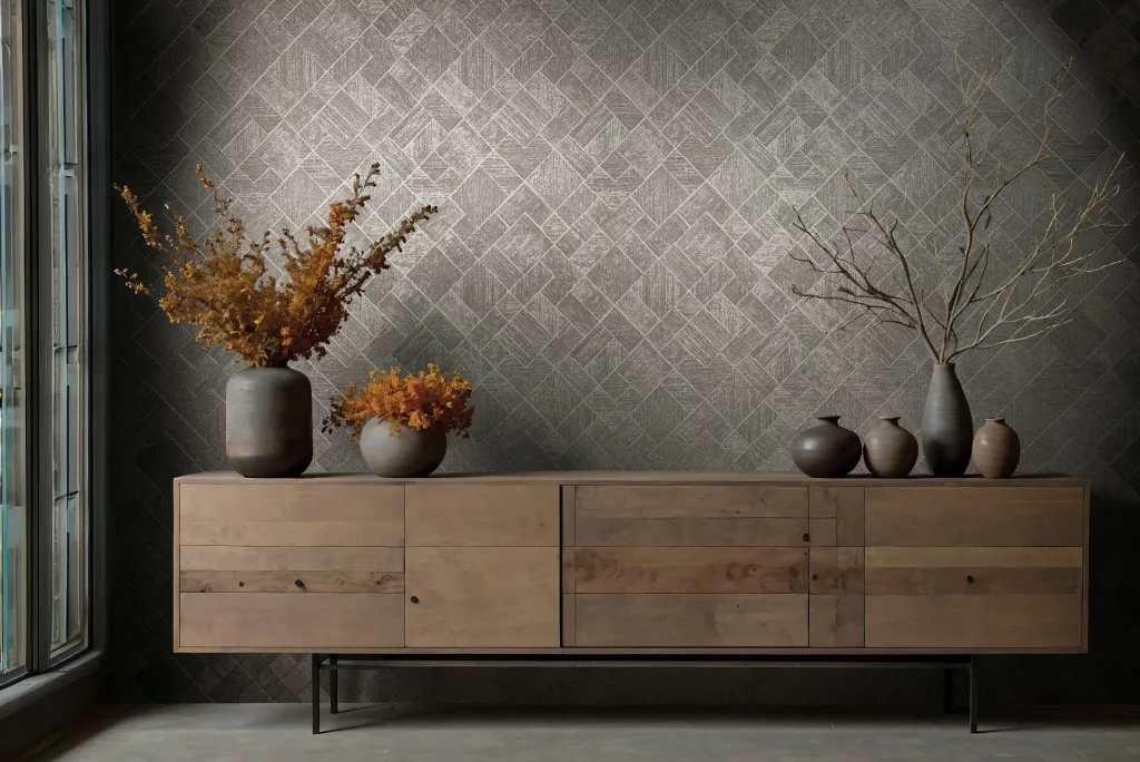 Ritus: Bronz ezüst pici bézzsel gyöngyházas fényes hatású négyszöges modern dombormintás (mosható) vlies-vinyl tapéta