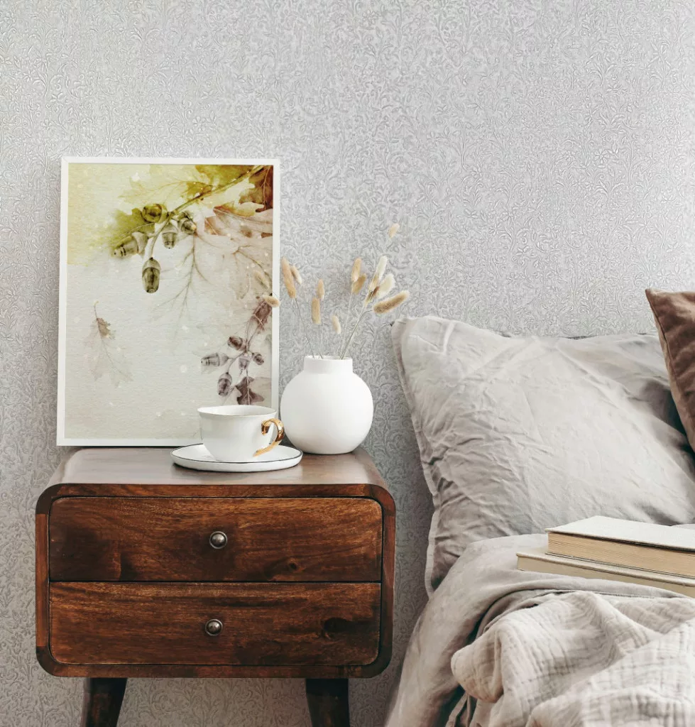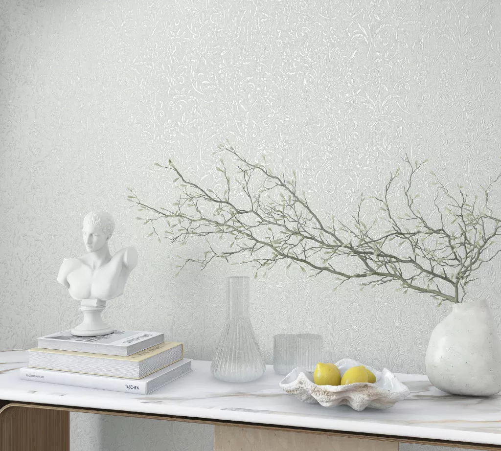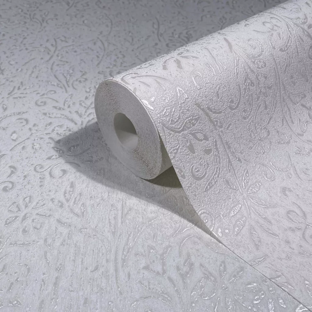 Ritus: Fehér alapon fémes gyöngyházfehér virág mintás (mosható) vlies-vinyl tapéta