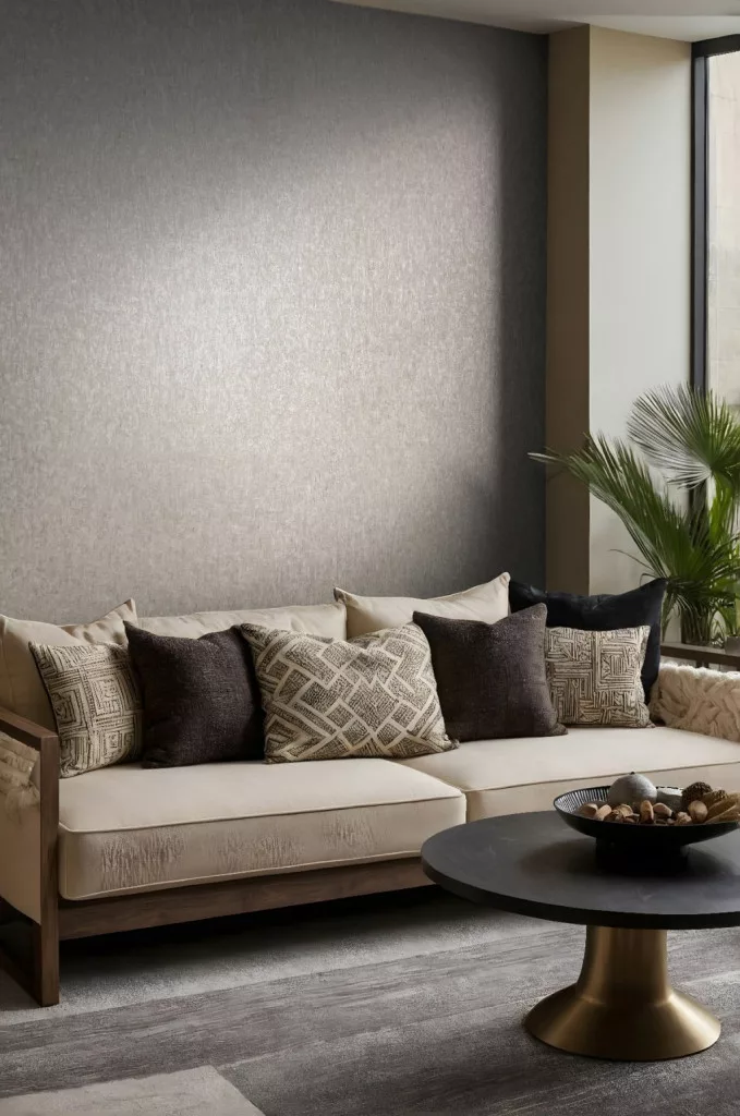 Ritus: Fényes barna vakolatmintás egyszínű matt texturált (mosható) vlies-vinyl tapéta
