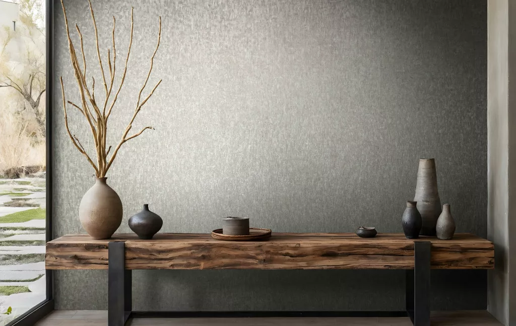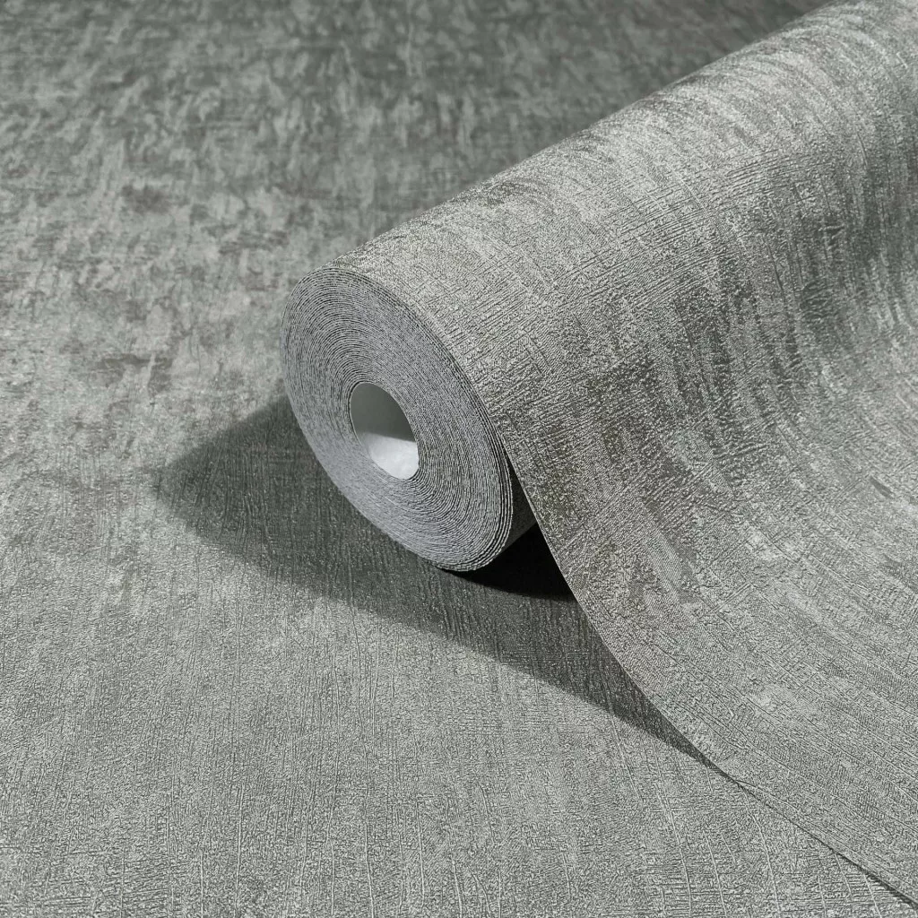 Ritus: Fényes szürke vakolatmintás egyszínű matt texturált (mosható) vlies-vinyl tapéta