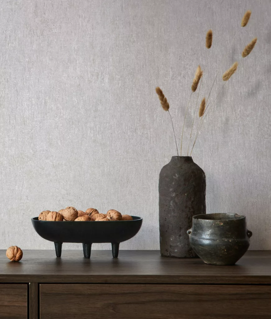 Ritus: Fényes szürkésbarna vakolatmintás egyszínű matt texturált (mosható) vlies-vinyl tapéta
