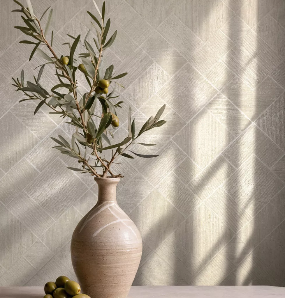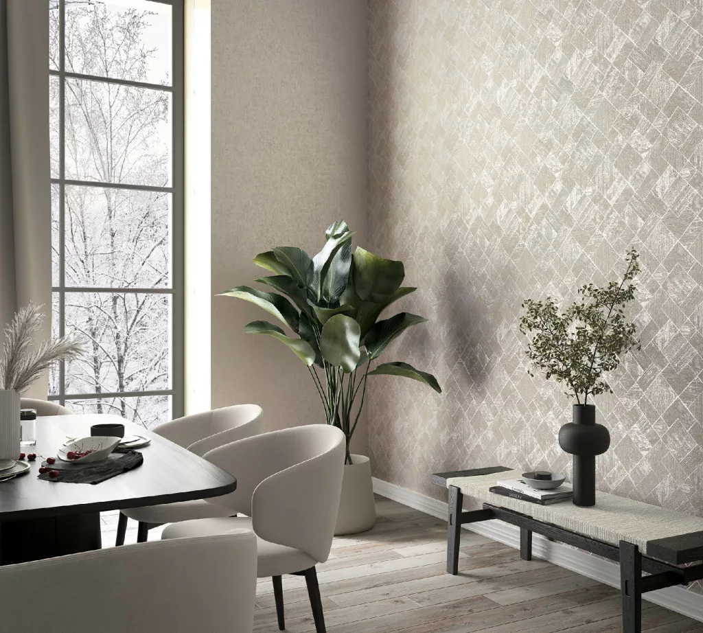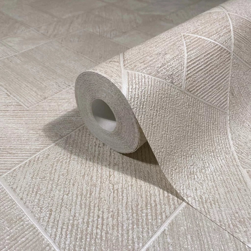 Ritus: Gyöngyház törtfehér pici bézzsel fényes hatású négyszöges modern dombormintás (mosható) vlies-vinyl tapéta