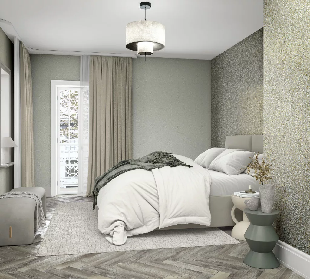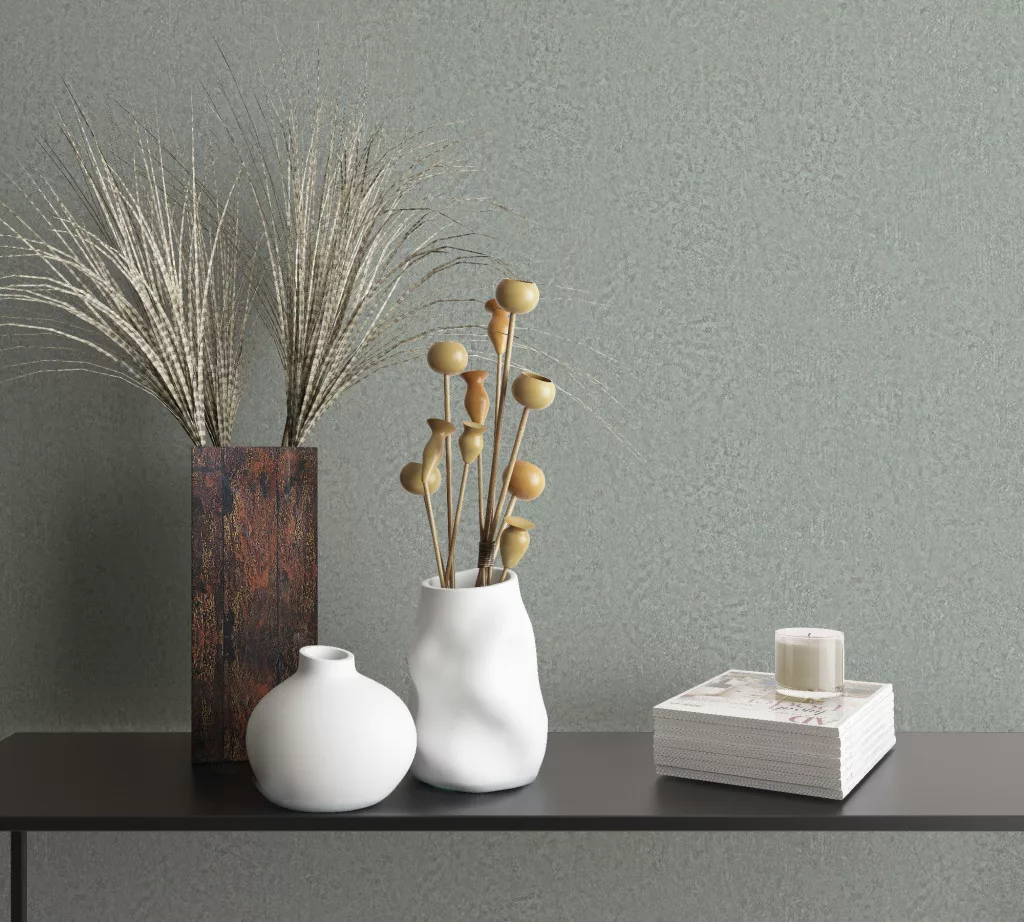 Ritus: Matt zöldes-szürke beton hatású (mosható) vlies-vinyl tapéta