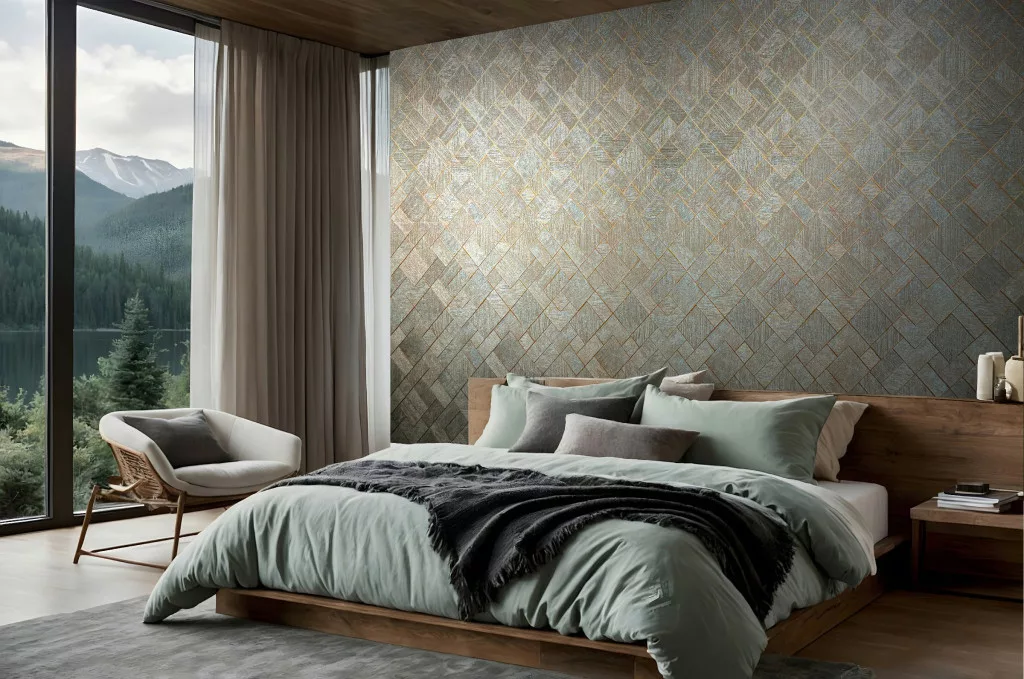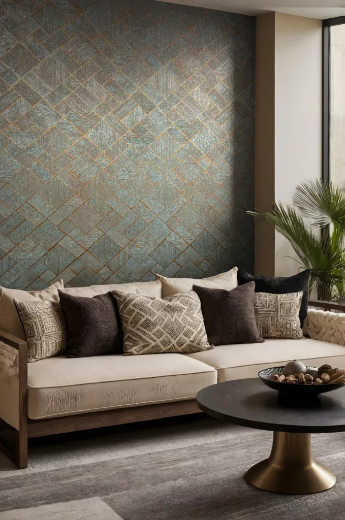 Ritus: Türkizkék arany pici ezüsttel gyöngyházas fényes hatású négyszöges modern dombormintás (mosható) vlies-vinyl tapéta
