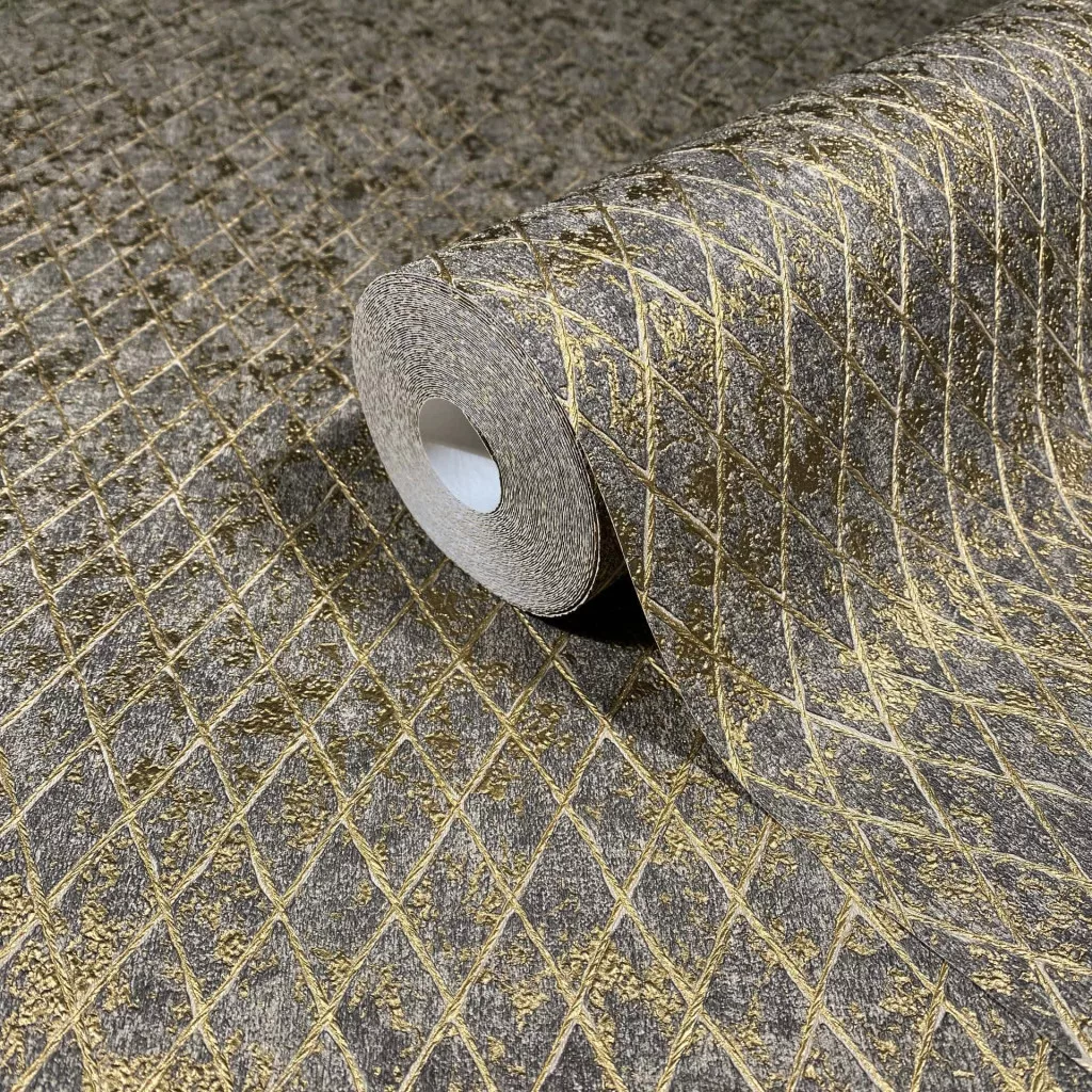 Ritus: Modern barna-arany rombusz mintás (mosható) vlies-vinyl tapéta