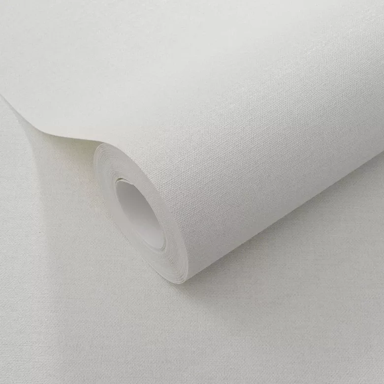 Secret Garden: Egyszínű fehér lenes hatású textúrájú (lángálló, mosható) vlies-vinyl tapéta