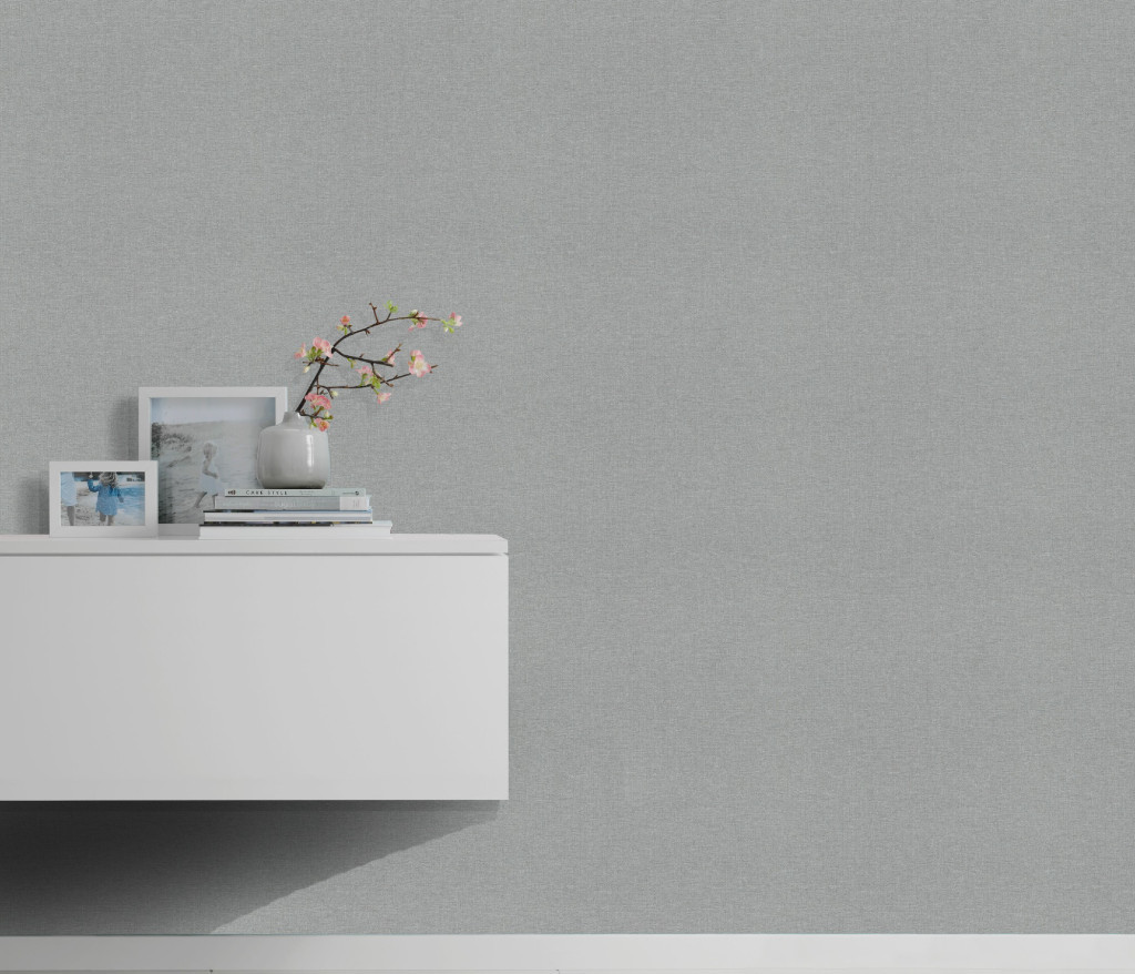 Secret Garden: Egyszínűközép szürke lenes hatású textúrájú (lángálló, mosható) vlies-vinyl tapéta