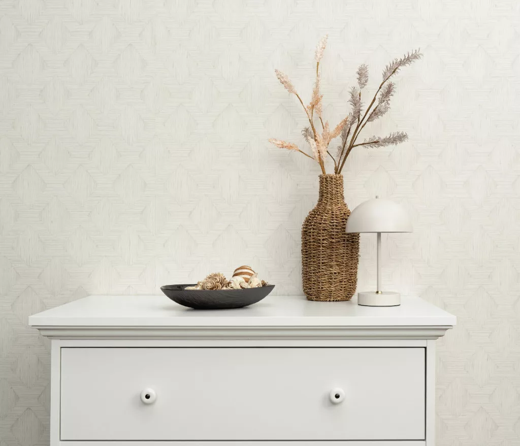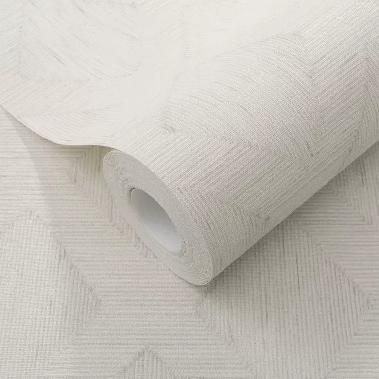 Secret Garden: Halványszürkés-fehéres geometria mintás (lángálló, mosható) vlies-vinyl tapéta