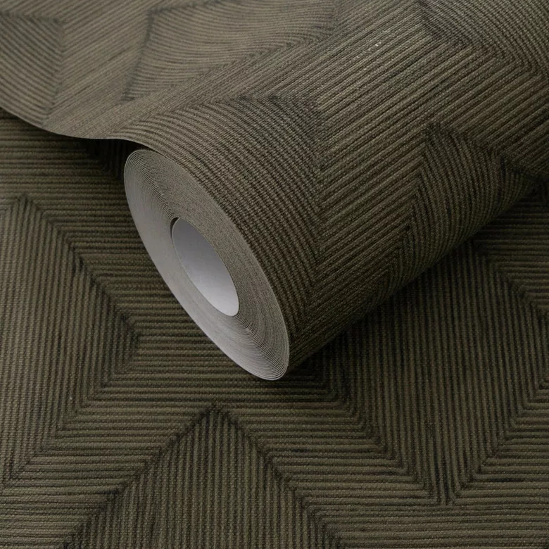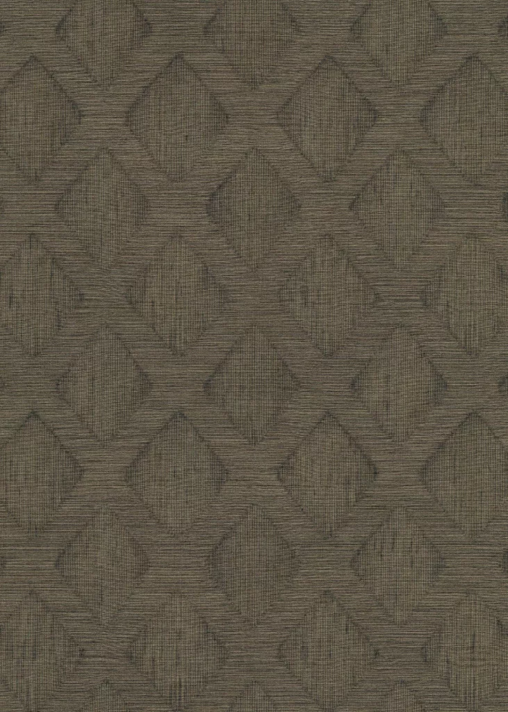 Secret Garden: Sötétbarnás-zöld beütéssel geometria mintás (lángálló, mosható) vlies-vinyl tapéta