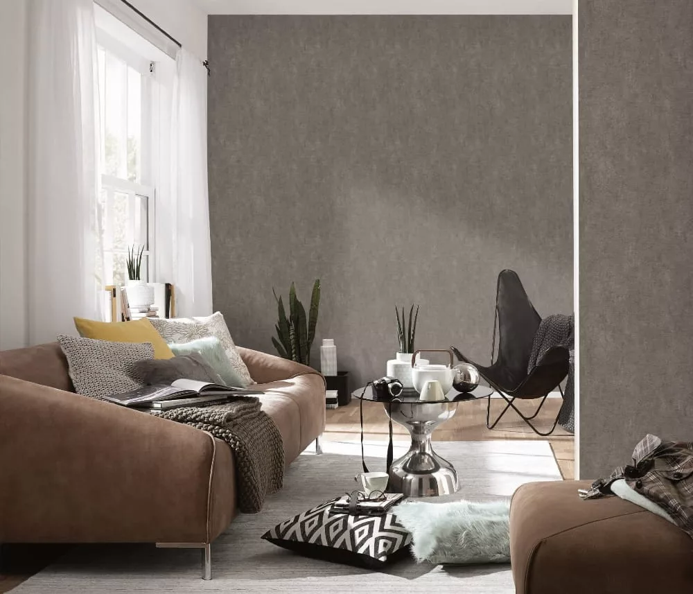 Sötétebb barnás-szürkés betonmintás (lángálló, mosható) vlies-vinyl tapéta