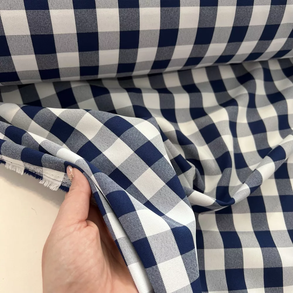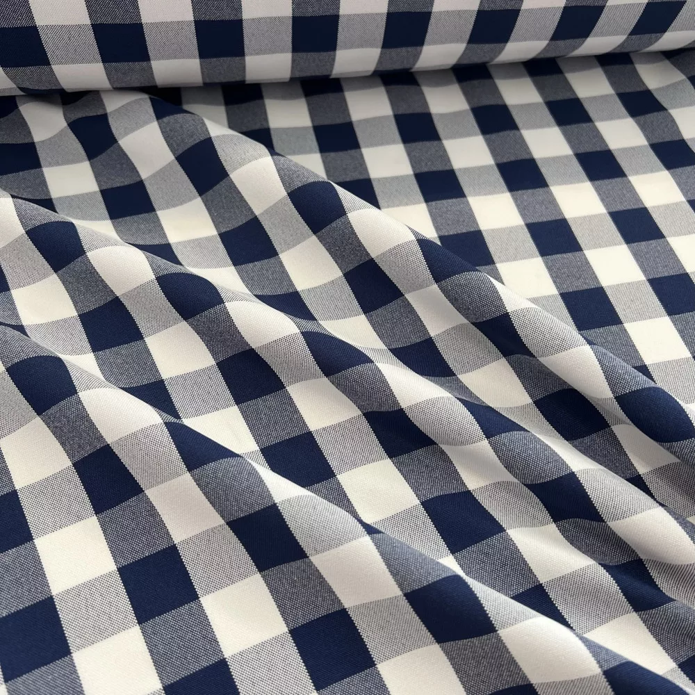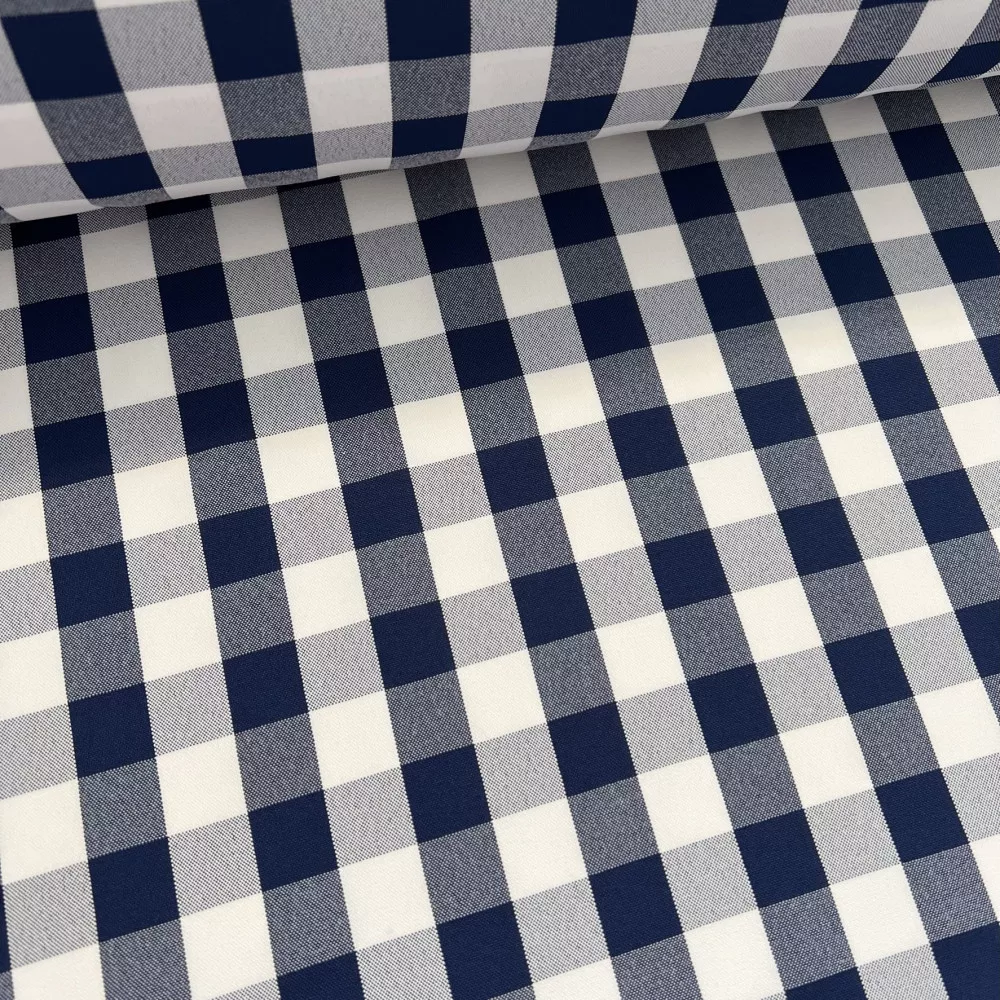 Sötétkék-fehér kockás panama (minimatt) szövet (2 cm-es kockás)