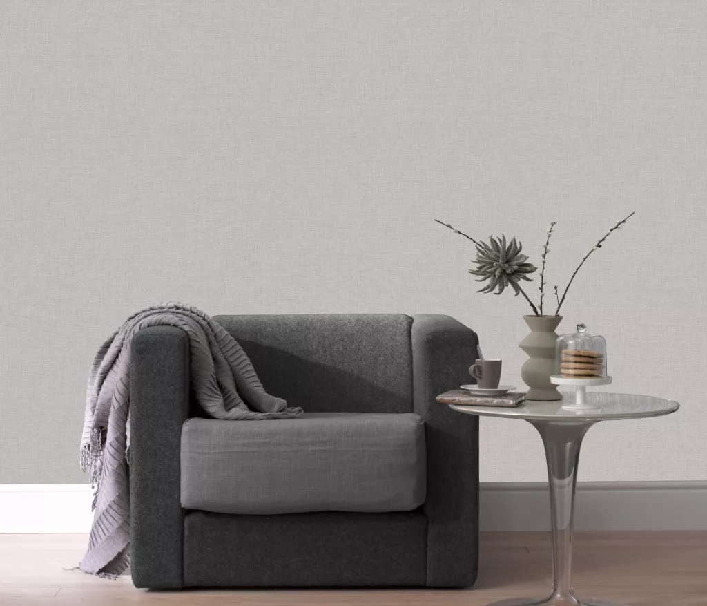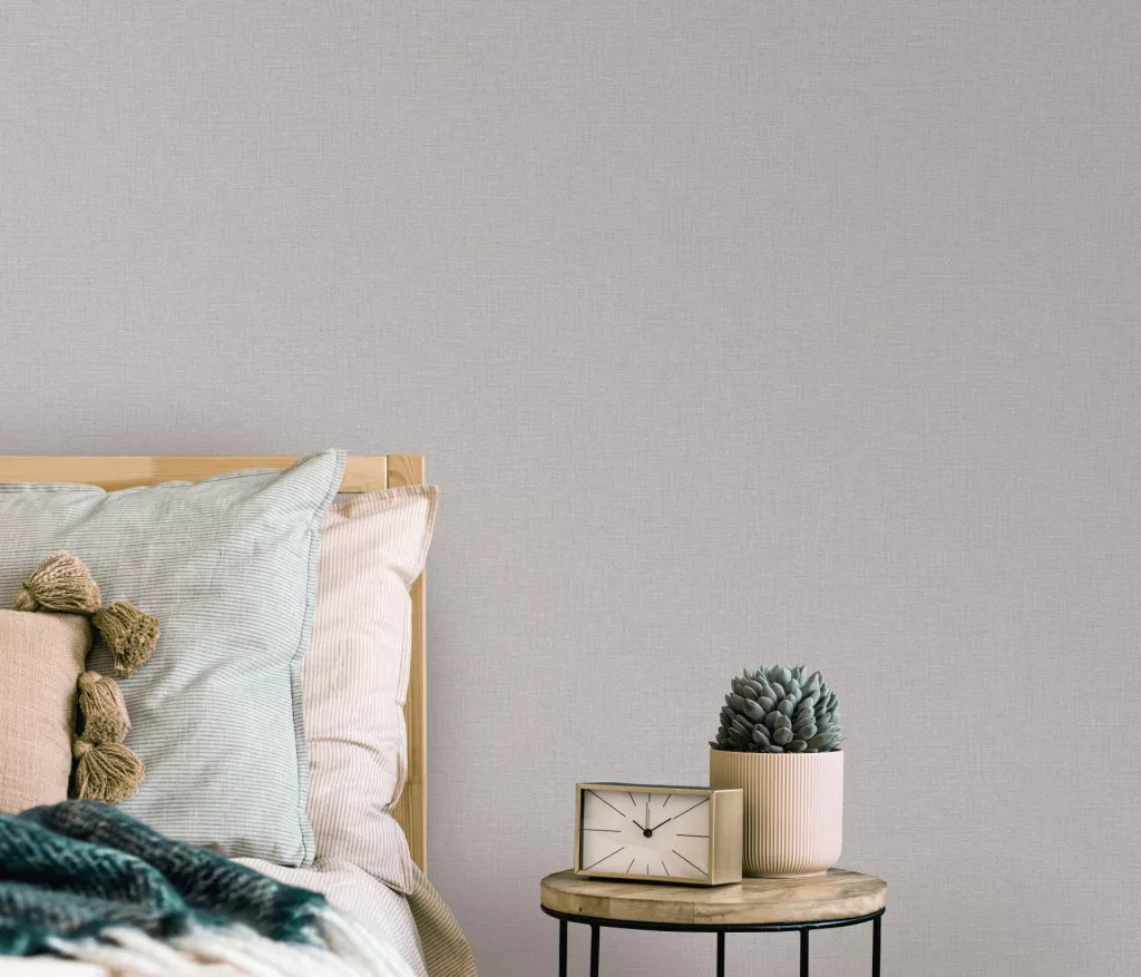 Szürke lenes textúrájú egyszínű (lángálló, mosható) vlies-vinyl tapéta