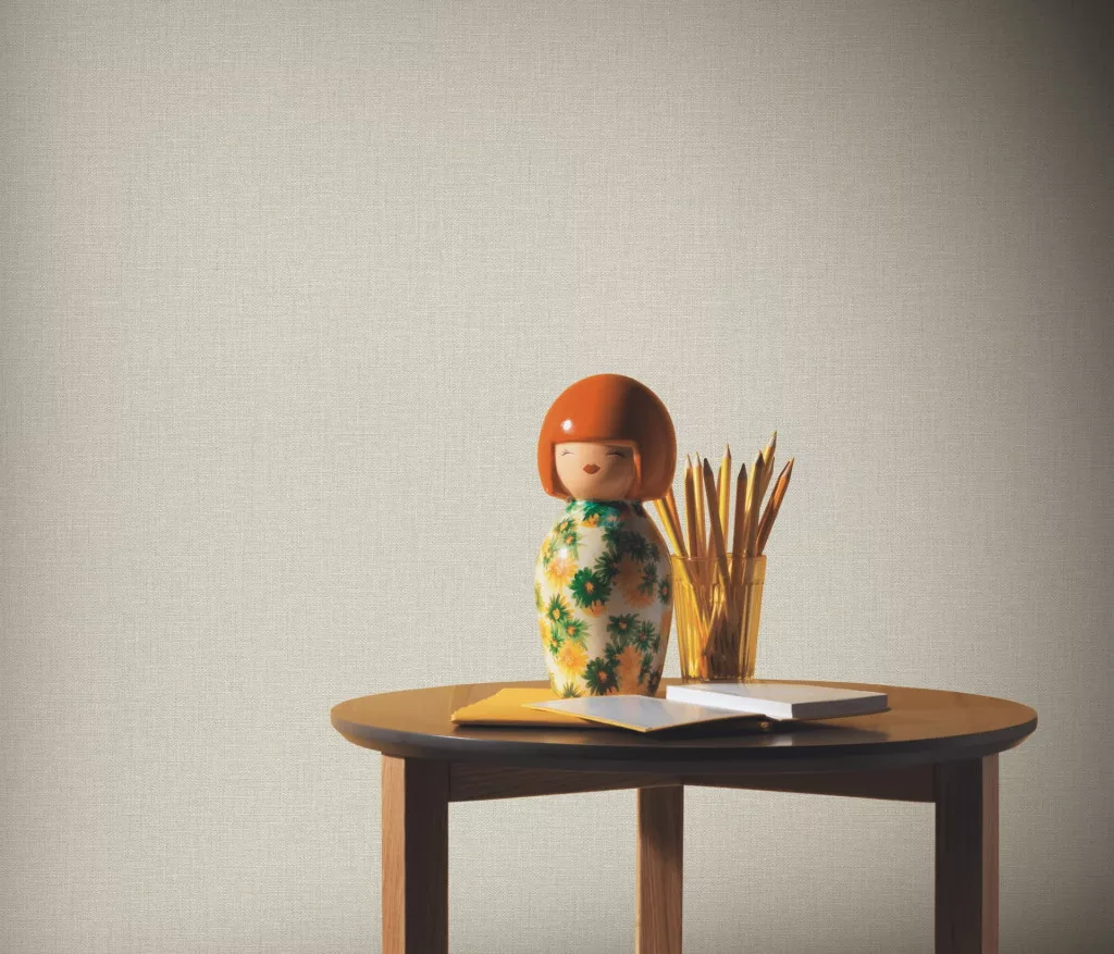 Szürkés-bézs lenes textúrájú egyszínű (lángálló, mosható) vlies-vinyl tapéta