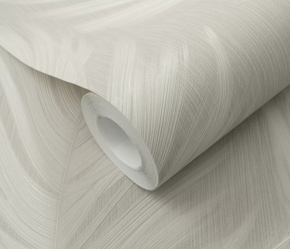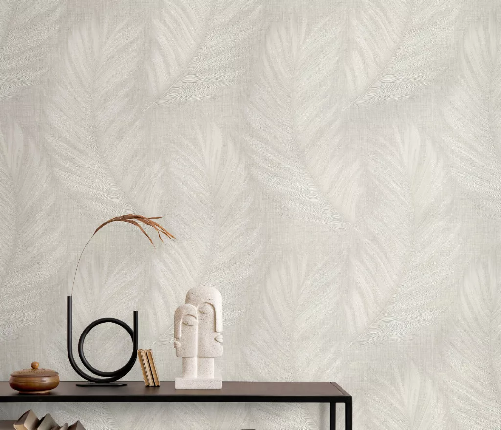 Szürkésbarna alapon tollas csillámos elegáns strukturált vlies-vinyl tapéta