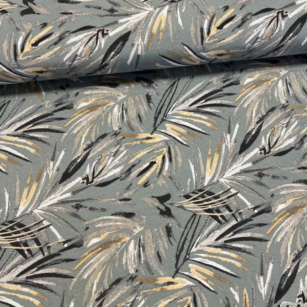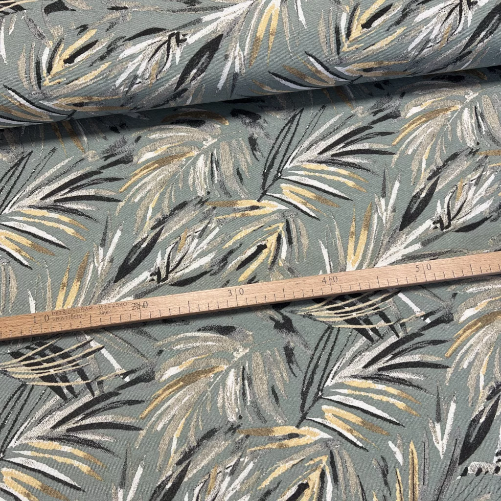 Szürkészöld alapon sárga-szürke leveles dekortextil (A)