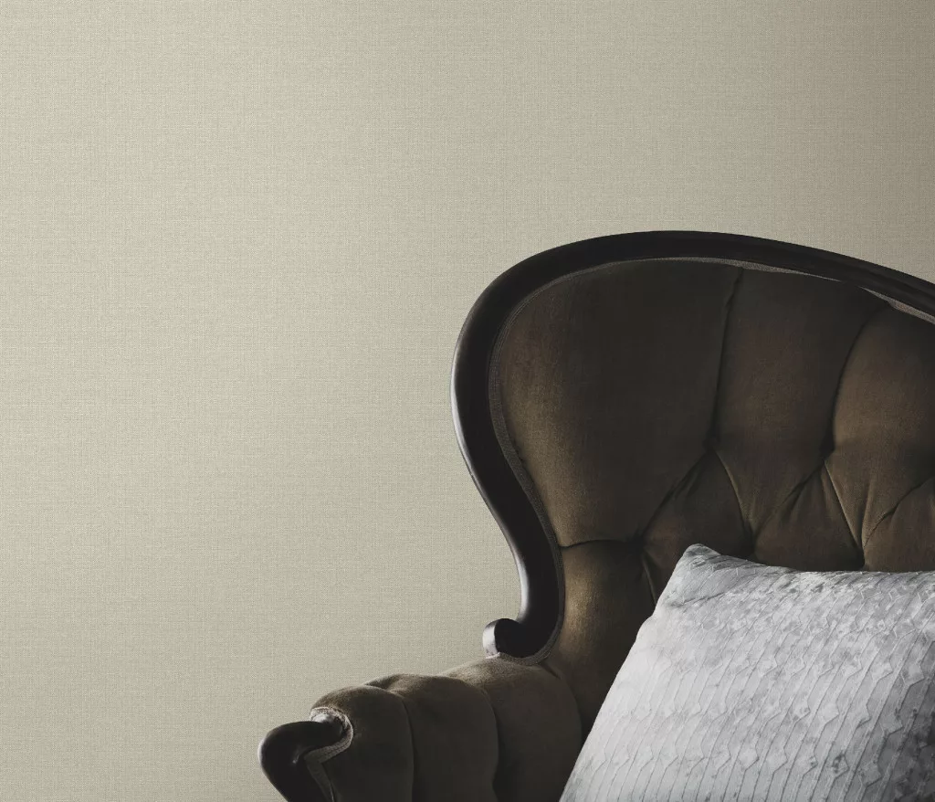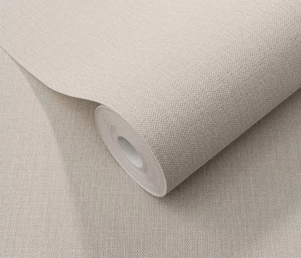 Taupe lenes keresztszövés-textúrájú egyszínű (lángálló, mosható) vlies-vinyl tapéta
