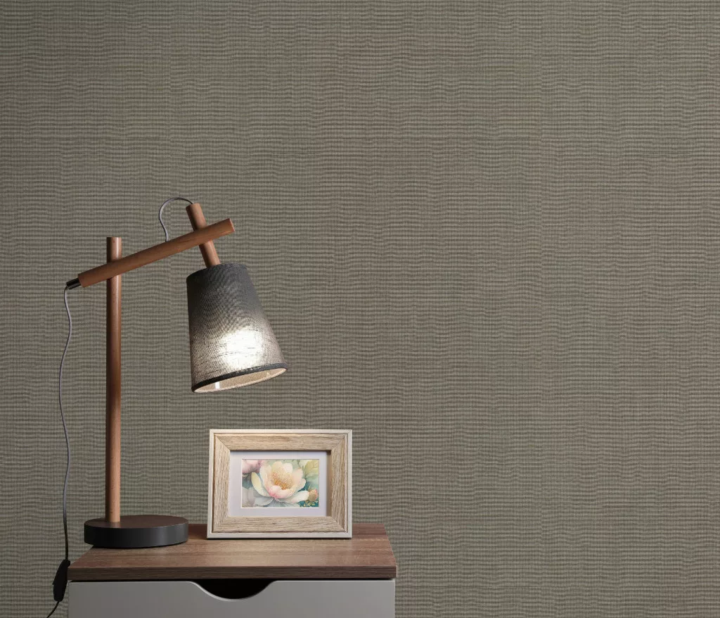 Sötétebb szürke (barnás szürke) alapon ezüst csillámos egyszínű strukturált vlies-vinyl tapéta