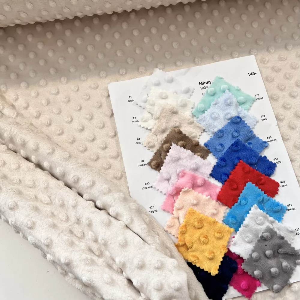 Minky anyagainkból gyerekruha, takaró, kispárna, rácsvédő, nyakpárna és még számtalan dolog készülhet. Pamutvászonnal és wellsoft anyaggal is kombinálható.