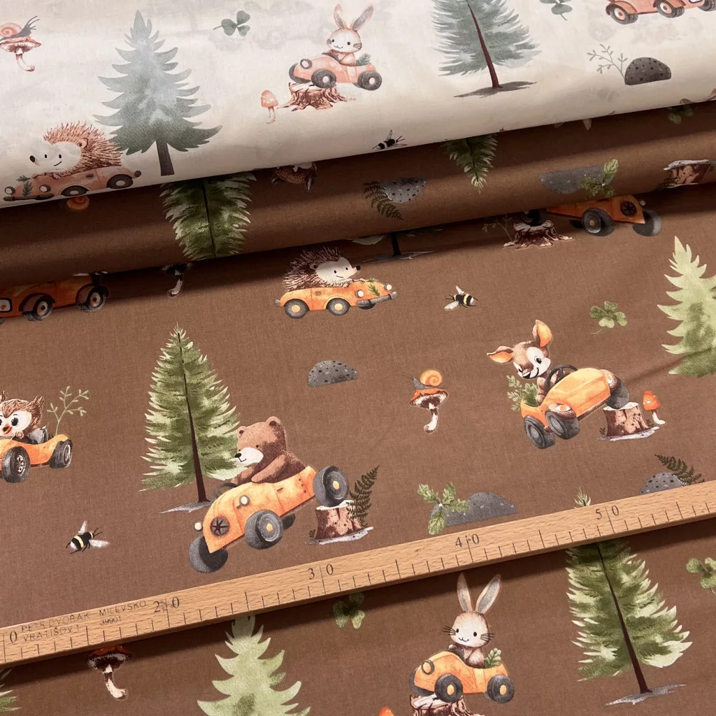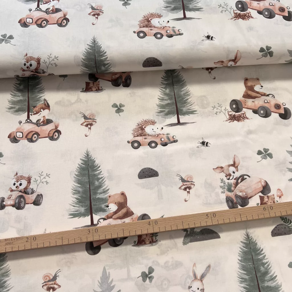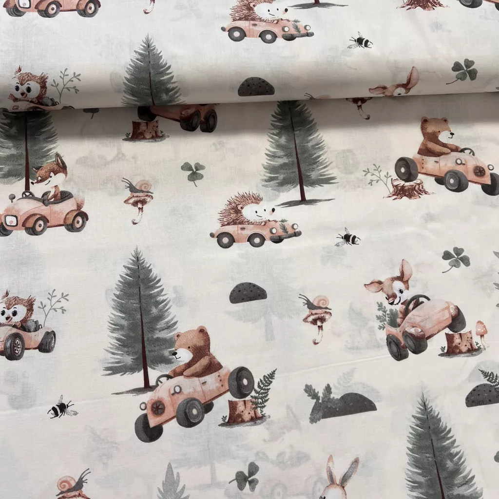 Vaj a. erdőben autózó kisállatos 160 cm sz. pamutvászon