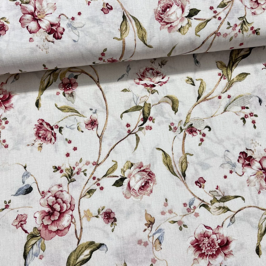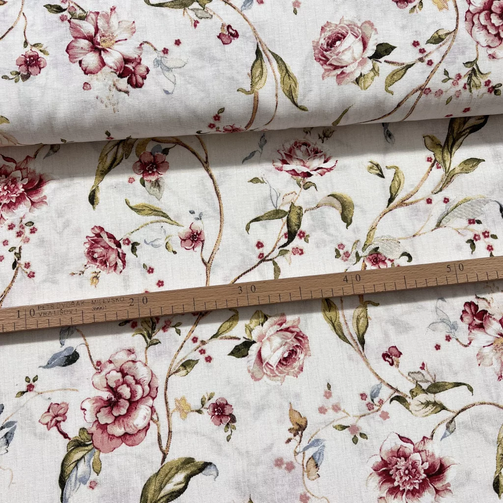 Világos alapon rózsaszín rózsás-indás dekortextil