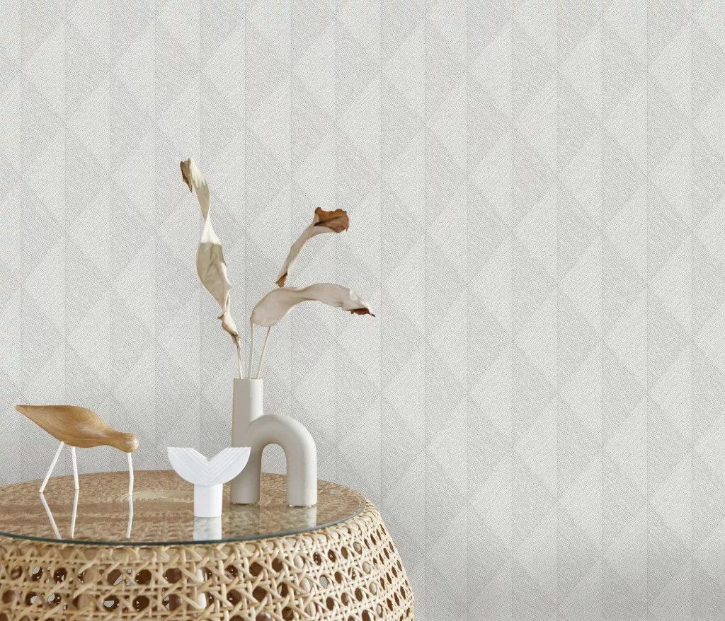 Világos szürke matt geometrikus mintás (lángálló, mosható) vlies-vinyl tapéta