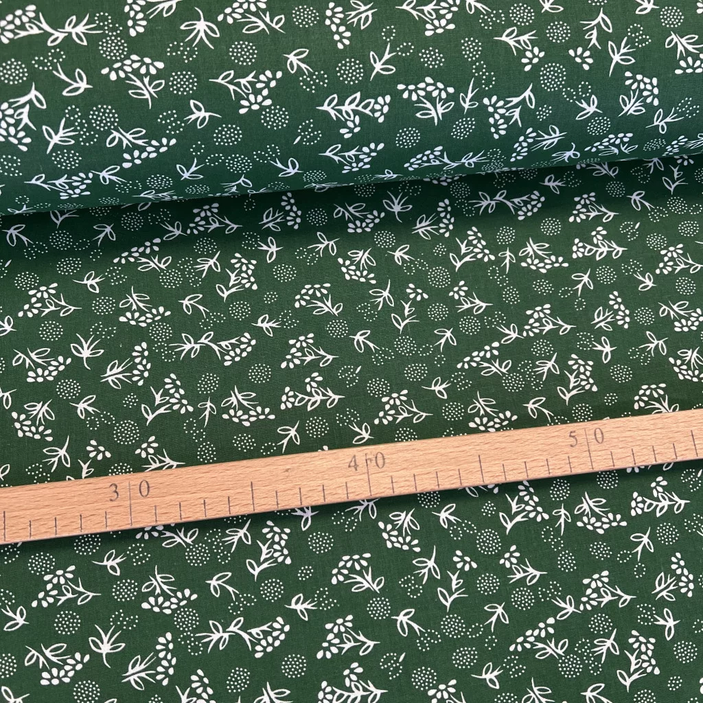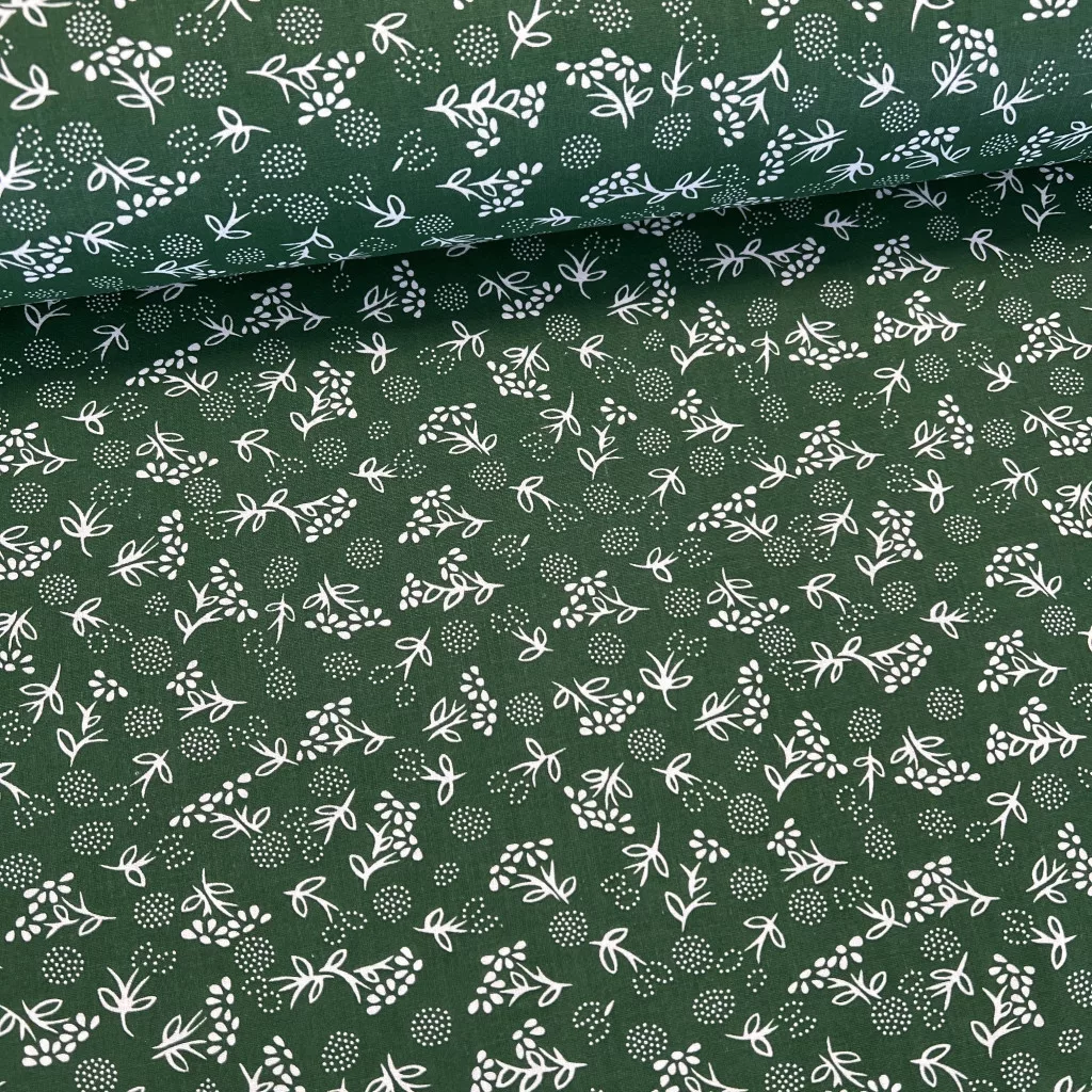 Zöld alapon fehér pitypangos kékfestő jellegű pamutvászon
