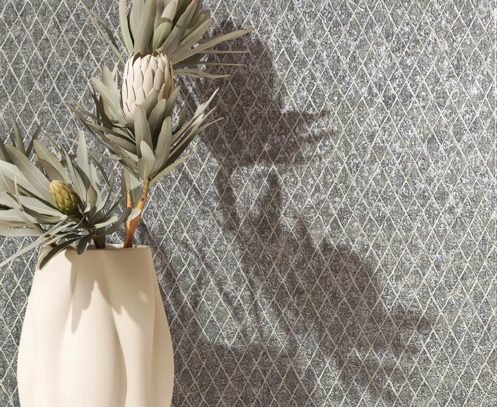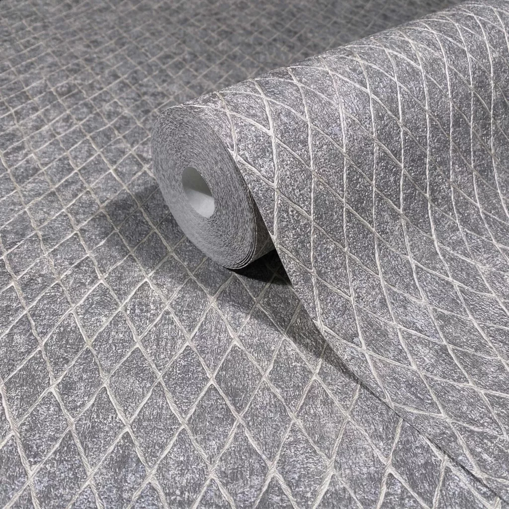Ritus: Modern ezüst szürke rombusz mintás (mosható) vlies-vinyl tapéta